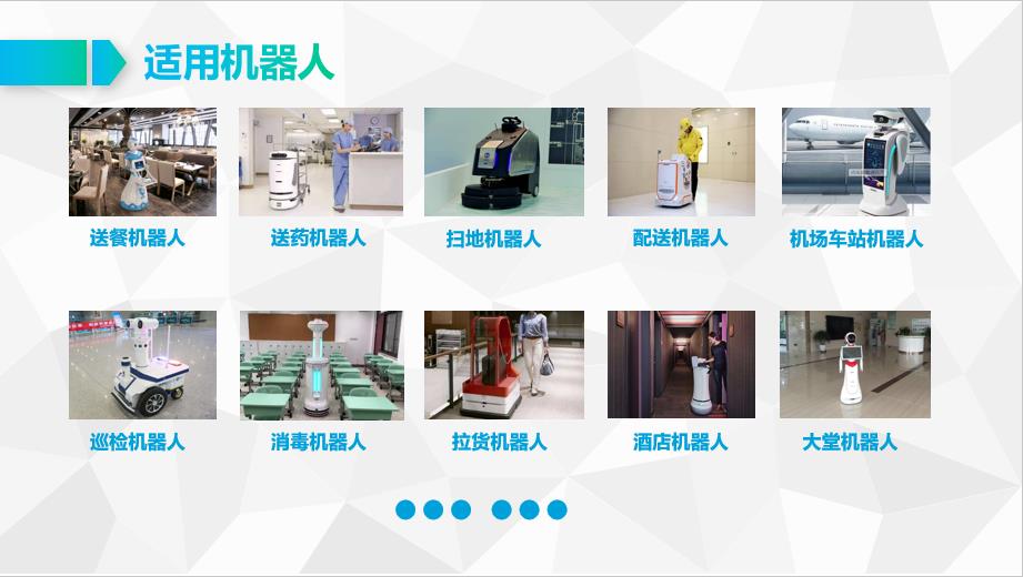 1、機(jī)器人替代人工越來越被廣泛應(yīng)用,如掃地機(jī)器人、服務(wù)機(jī)器人、送餐機(jī)器人、巡檢機(jī)器人、送藥機(jī)器人、消毒機(jī)器人等;
